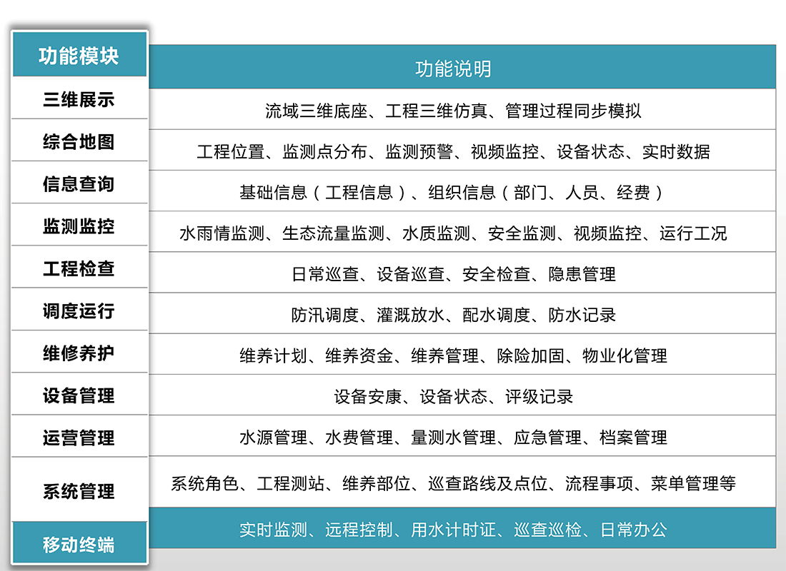 系統(tǒng)依托PLC、IOT等數(shù)字化技術(shù),從PLC到信息化實現(xiàn)全鏈路解決方案,實現(xiàn)水利工程信息化集成、信息化運(yùn)營。轉(zhuǎn)變水庫、水閘、泵站、堤防、山塘、灌區(qū)、水站、供水廠等水利工程日常管理模式,覆蓋工程狀況、安全管理、運(yùn)行管護(hù)、管理保障和信息化建設(shè)等5大建設(shè)需求。