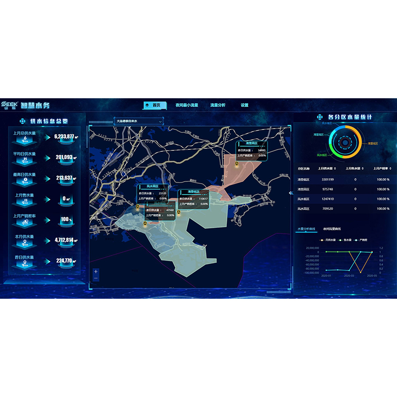 山科智慧水務平臺是對水務領域進行感知物聯、集成分析、智能決策和展示執行的一體化解決方案及系統,實現水務營運的整體掌控,確保水務運行安全,降低水務運行漏損及成本,提升人員效益和水務設施壽命,提高水務經營管理 的核心能力。